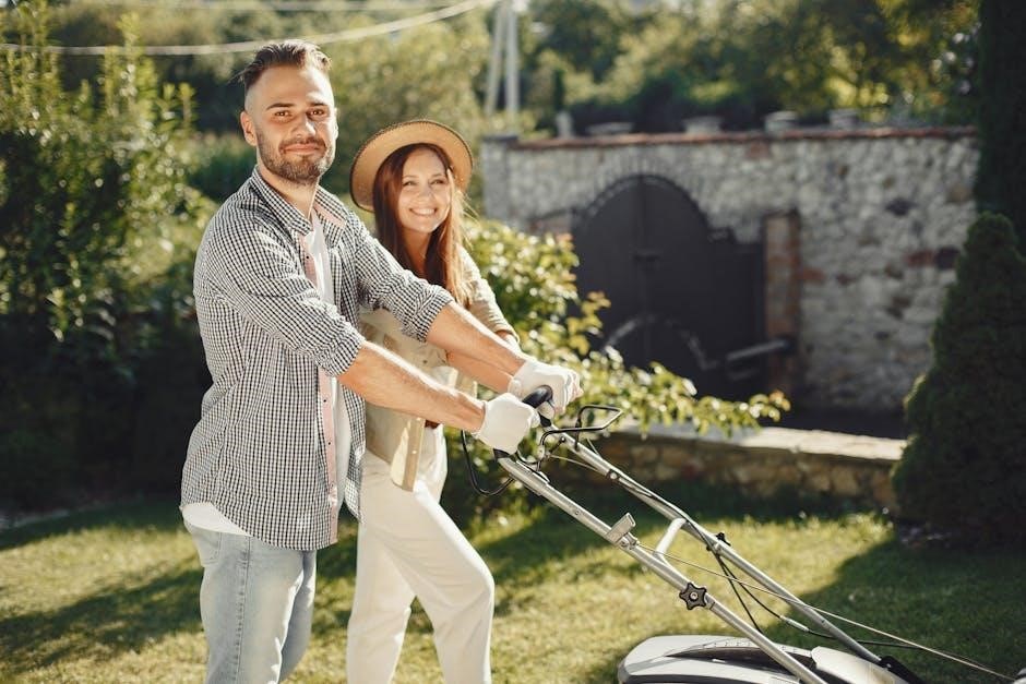 For a healthy and well-maintained lawn, overlap each mowing pass by a few inches to prevent scalping and ensure even cutting․ Adjust the cutting height according to your grass type and desired lawn appearance, utilizing the adjustable height settings․