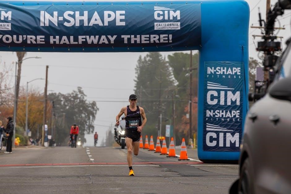 For runners with limited time, three-day running week plans offer a viable alternative, often detailed in marathon training PDFs. The Marathon 3 program exemplifies this approach, fitting between novice and intermediate levels. These plans require a solid base – consistently running 25 miles weekly and achieving specific times for 5k (18:30), 10k (38:00), or half marathon races.